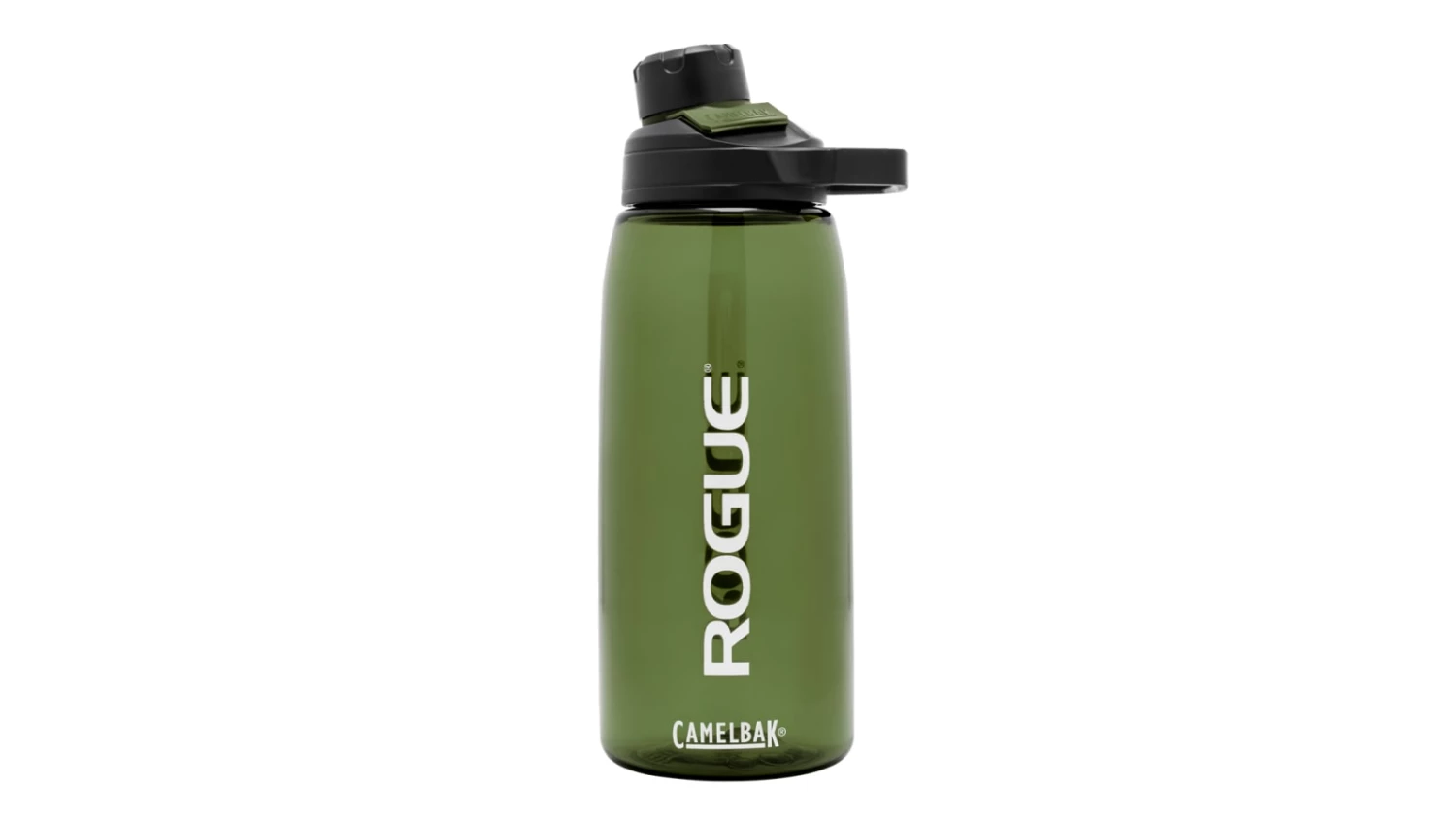 This Rogue branded version of the latest Camelbak Chute® Mag is available here in a translucent Olive colorway with a matte black universal cap + carry handle. The cap is equipped with a unique magnetic top that stows securely out of the way when open and is leak-proof when closed.