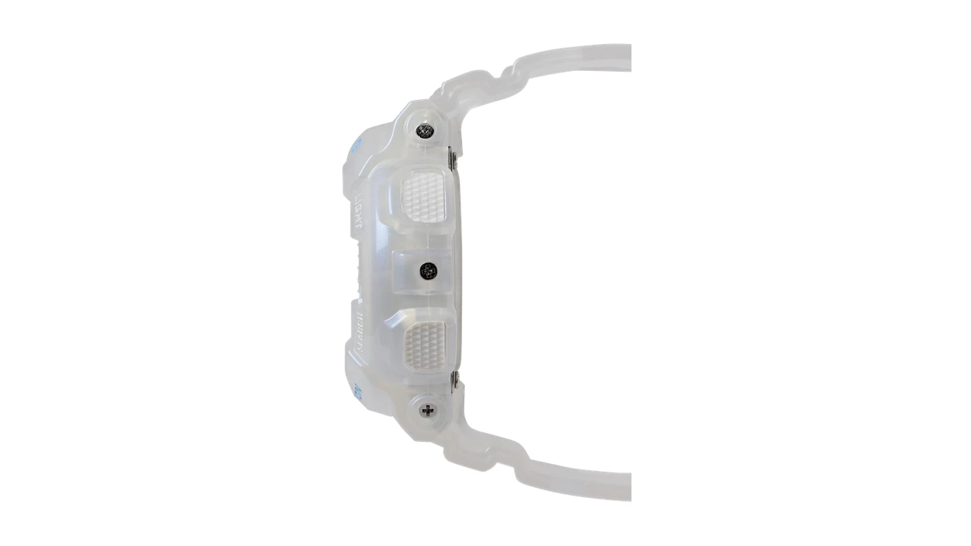 The base model is Casio’s popular BA110 design. The hour markers and faces use polarized hues that change color depending on the viewing angle. This combines with pink, purple, black and other pastel colors for the buttons and text to create a colorful design. The case and bands have their own polarizing paint finish for an aurora-like effect.