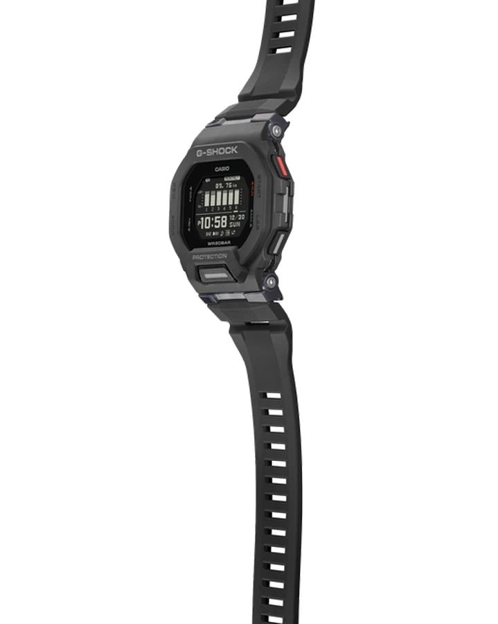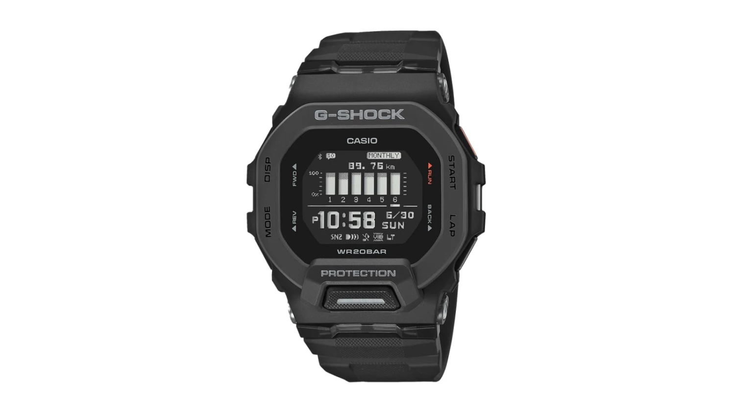 The shock-resistant and water-resistant GBD200-1 features a high-definition MIP LCD display with Super Illuminator face illumination for easy reading in the dark. The soft urethane band material provides improved comfort, while a large number of band holes let you adjust the fit to your particular wrist. Available here in solid Black.
