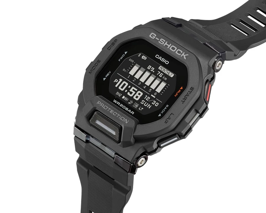 A new, thinner addition to the G-Shock MOVE series, the go-anywhere GBD200-1 sports watch allows you to link continuously with your smartphone via Bluetooth, supporting auto time adjustments, phone notifications, step tracking, and more. Direct connection to your phone’s GPS also enables quicker, more accurate calibration of distance measurements on the go. Used in combination with the stopwatch, you can track your running pace and utilize the Auto Lap feature to automatically track your times over a specific distance.