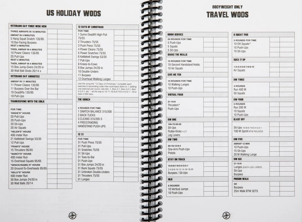 - WOD Log – Includes room to track scores for girls, heroes, travel workouts, Games WODs and other benchmarks