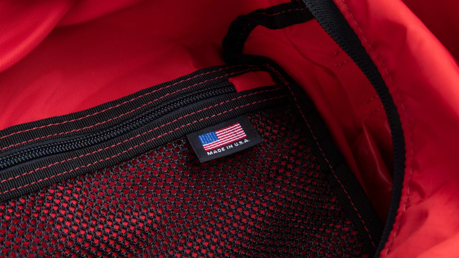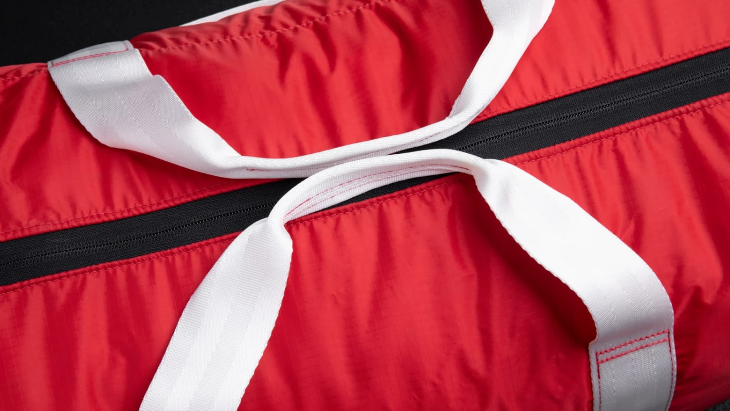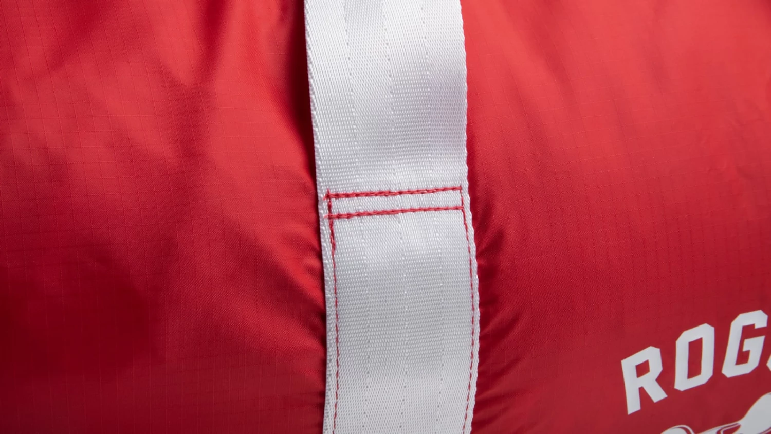 Made in the USA, the Rogue Old School Gym Bag combines a classic retro duffle look with quality modern materials, including a 70D Nylon Ripstop exterior, 420D Packcloth Nylon interior lining, and 2โ wide white Nylon webbing for the adjustable (non-removable) shoulder straps and handles. The bag features the Rogue Barbell Club logo on one panel and is available in three colorways: Black w/ Red interior, Red w/ Red interior, or Blue w/ Blue interior.