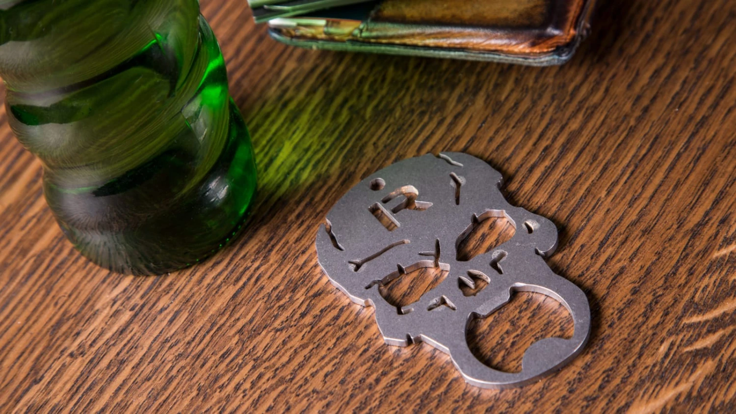 The Rogue Skull Bottle Opener is made from 11-gauge stainless steel, with precision, laser-cut features and Rogue โRโ branding. Each opener is manufactured in the USA and tumbled to remove any harsh edges. Fits in your pocket, takes no prisoners, leaves no bottles behind.