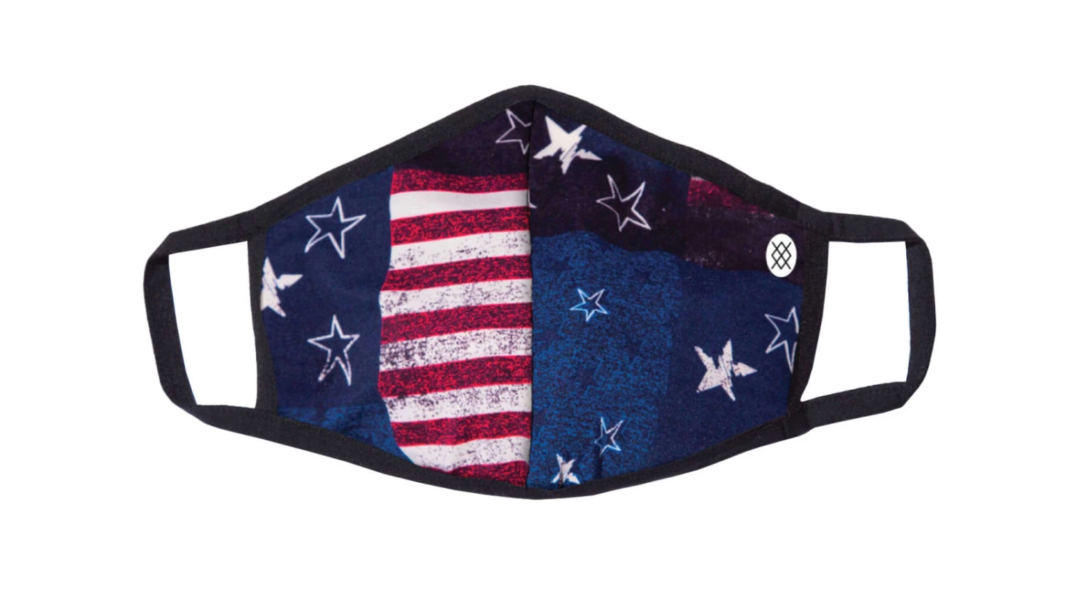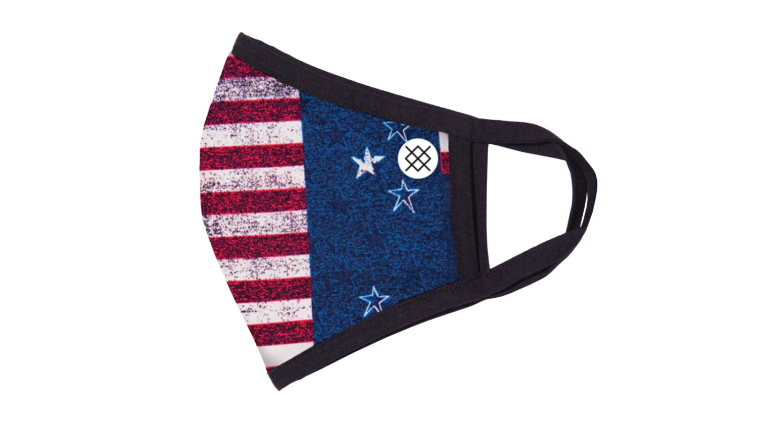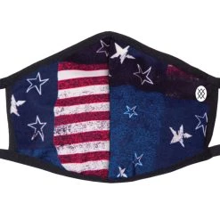 Masks are sold as singles. Available here in a patriotic red, white and blue “Valiant” design.