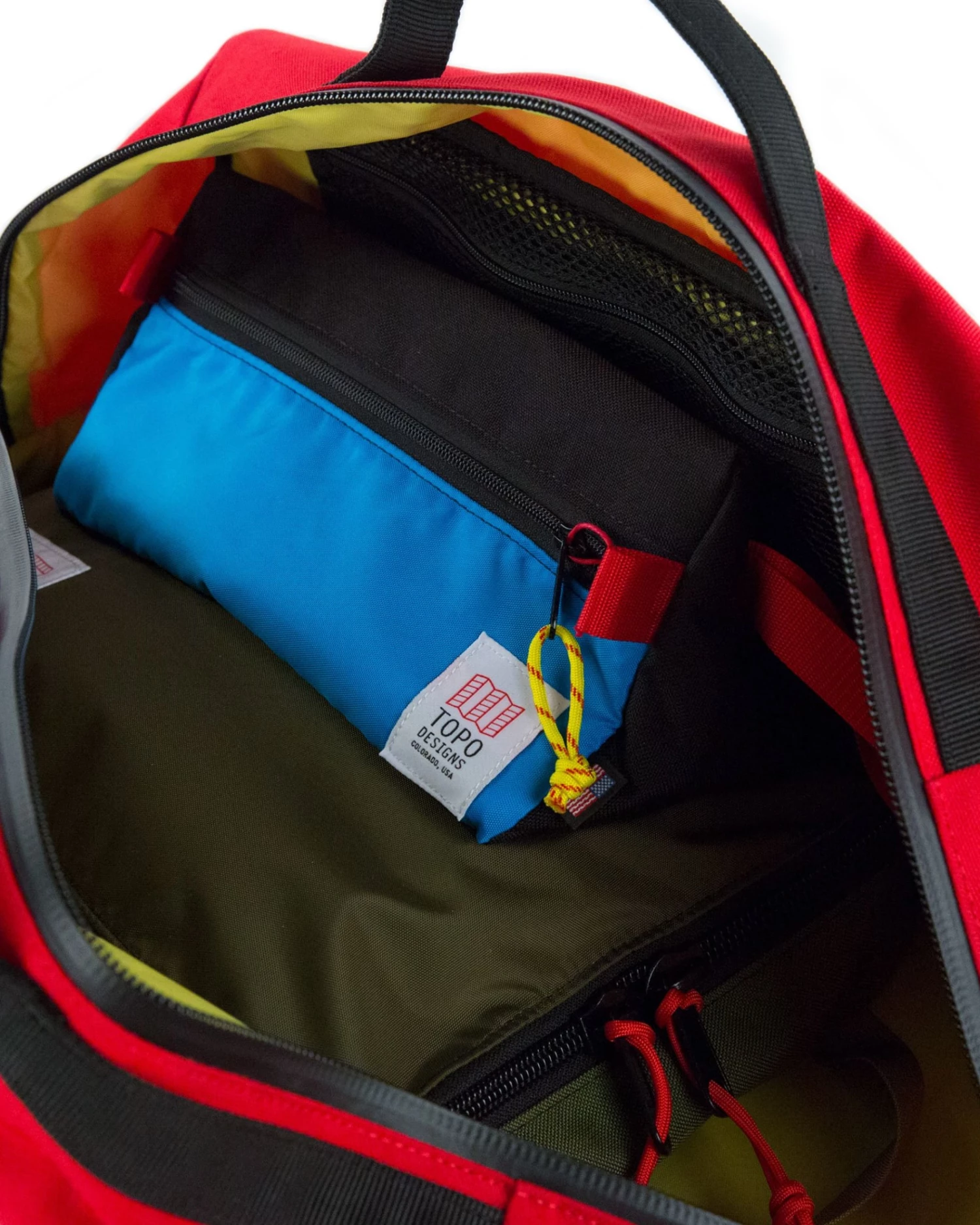 The heavy-duty, go-anywhere Mountain Duffel from Topo Designs works as a stand-alone carry bag, or in combination with a Topo Pack Bag or other accessories. Featuring a padded 1680D ballistic nylon base, a 1000D fabric outer, and a coated pack cloth liner, the Mountain Duffel not only keeps your possessions protected, but also protects you from friction and discomfort as you head for your destination.